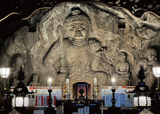 大岩そうめんおススメは、剱岳(つるぎだけ)の麓・上市町にある真言密宗大本山大岩山日石寺(おおいわさんにっせきじ)。2025年、開創1300年を迎える古刹です。巨岩に彫られた磨崖仏は、国の史跡と重要文化財の二重指定を受ける貴重なもので、中心に鎮座する本尊不動明王は、その大きさと美しさから我が国屈指のものとされています。