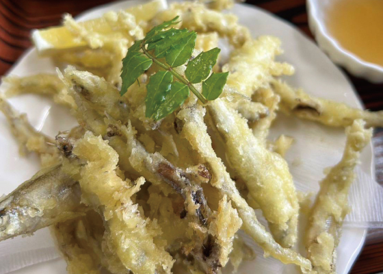 ワカサギの天ぷら中禅寺湖で獲れるワカサギが大好きです。クセがないため、軽く塩をかけレモンを絞って食べるシンプルな天ぷらはいくらでも食べられます。秋には自分で釣ったワカサギを自宅で天ぷらにして、ビールを飲みながら食べると最高です。