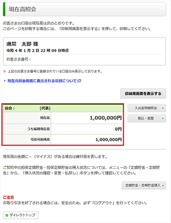 ホーム > ゆうちょダイレクトのご案内 > 主な操作方法 > 現在高照会