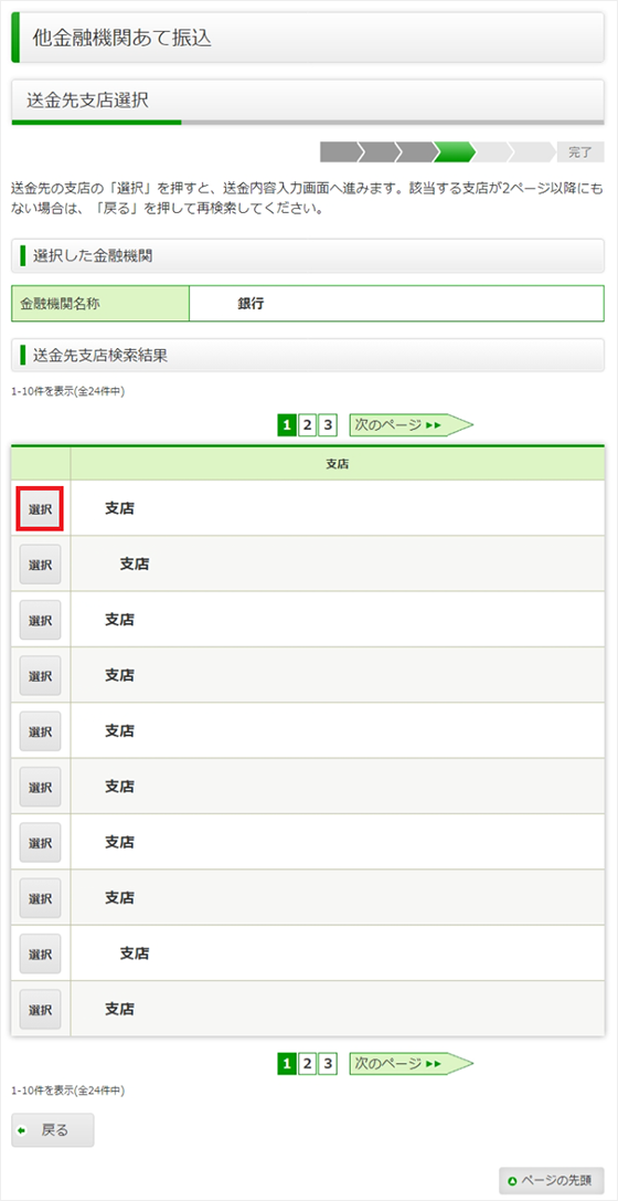 送金先支店名の左の「選択」を押してください。