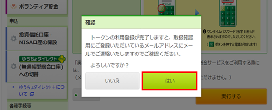 ゆうちょダイレクトにログイン後、「トークンの利用登録」画面が表示されます。