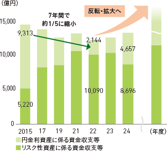 さらに、2024年度に本格稼働させた国内プライベートエクイティ投資(Σビジネス)でも、中核子会社「ゆうちょキャピタルパートナーズ」設立や、パートナー企業と複数のファンドを立ち上げるなど、将来的な収益化に向け着実に前進しています。