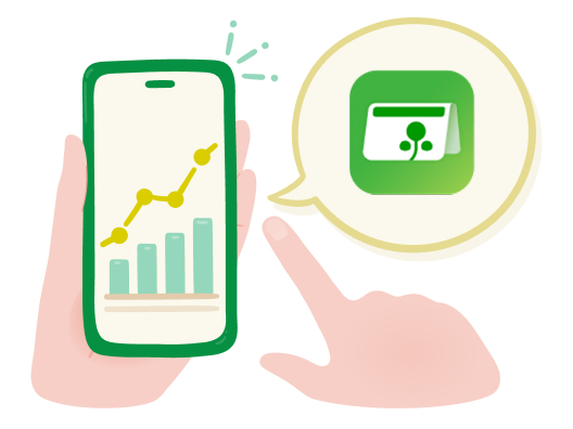 いつものアプリでカンタン取引ゆうちょ通帳アプリで投資信託のお取引や運用残高の確認ができます。