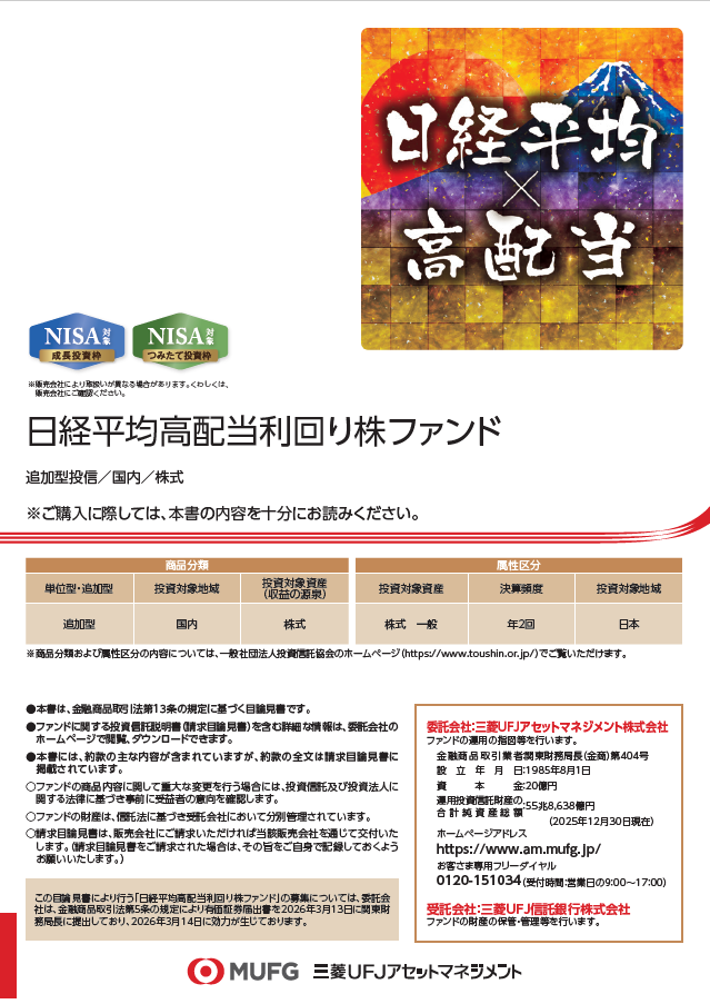 日経平均株価採用銘柄から予想配当利回り上位30社に投資することで、配当収益の確保および中長期的な値上がり益の獲得を目指すファンド